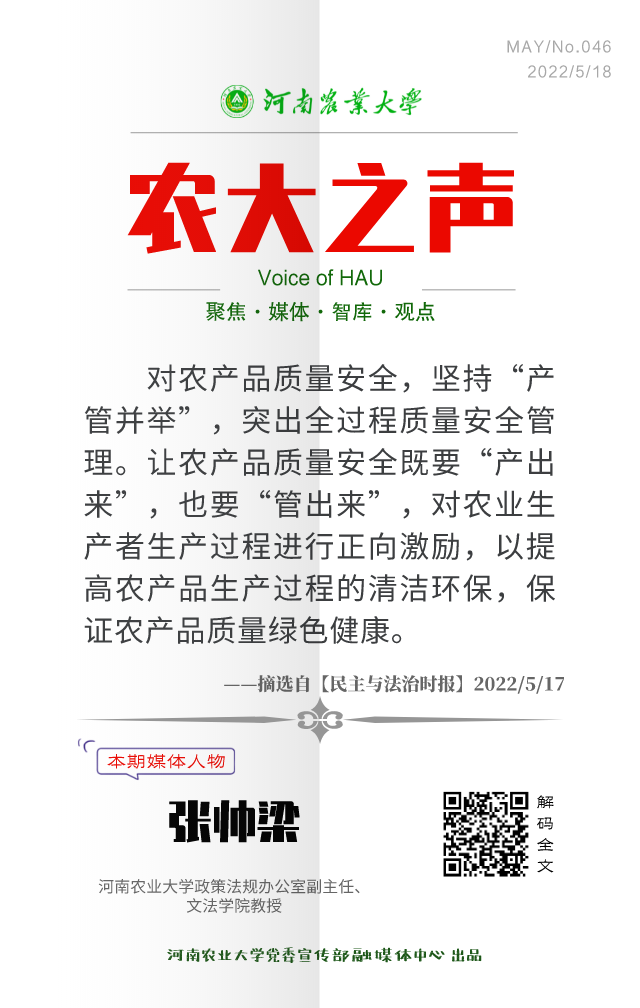 农大之声 <第四十六期>|产品质量安全法修订草案突出质量导向和全程监管、拓宽法律调整范围