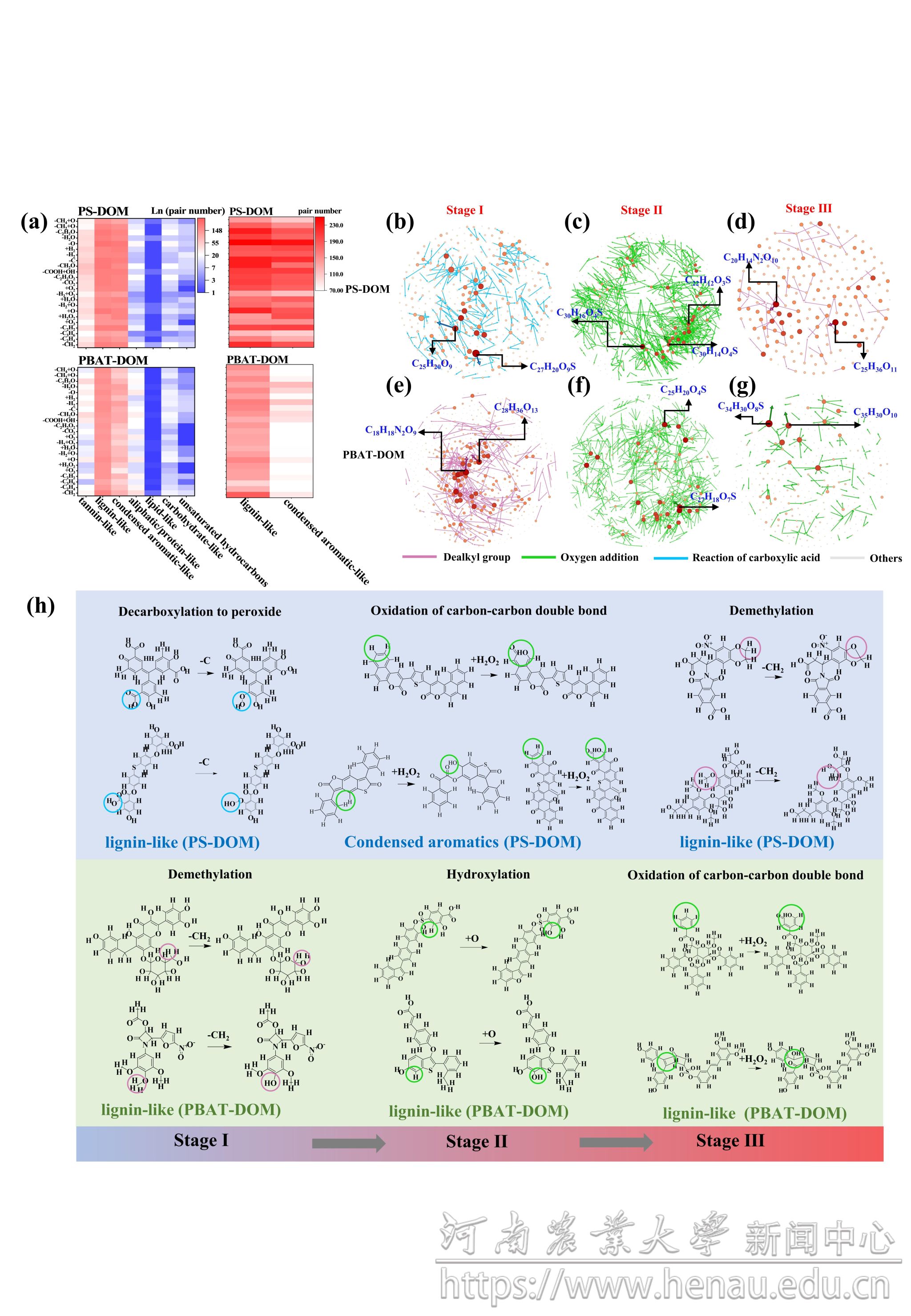 图2 紫外老化条件下PS-DOM和PBAT-DOM的关键反应途径