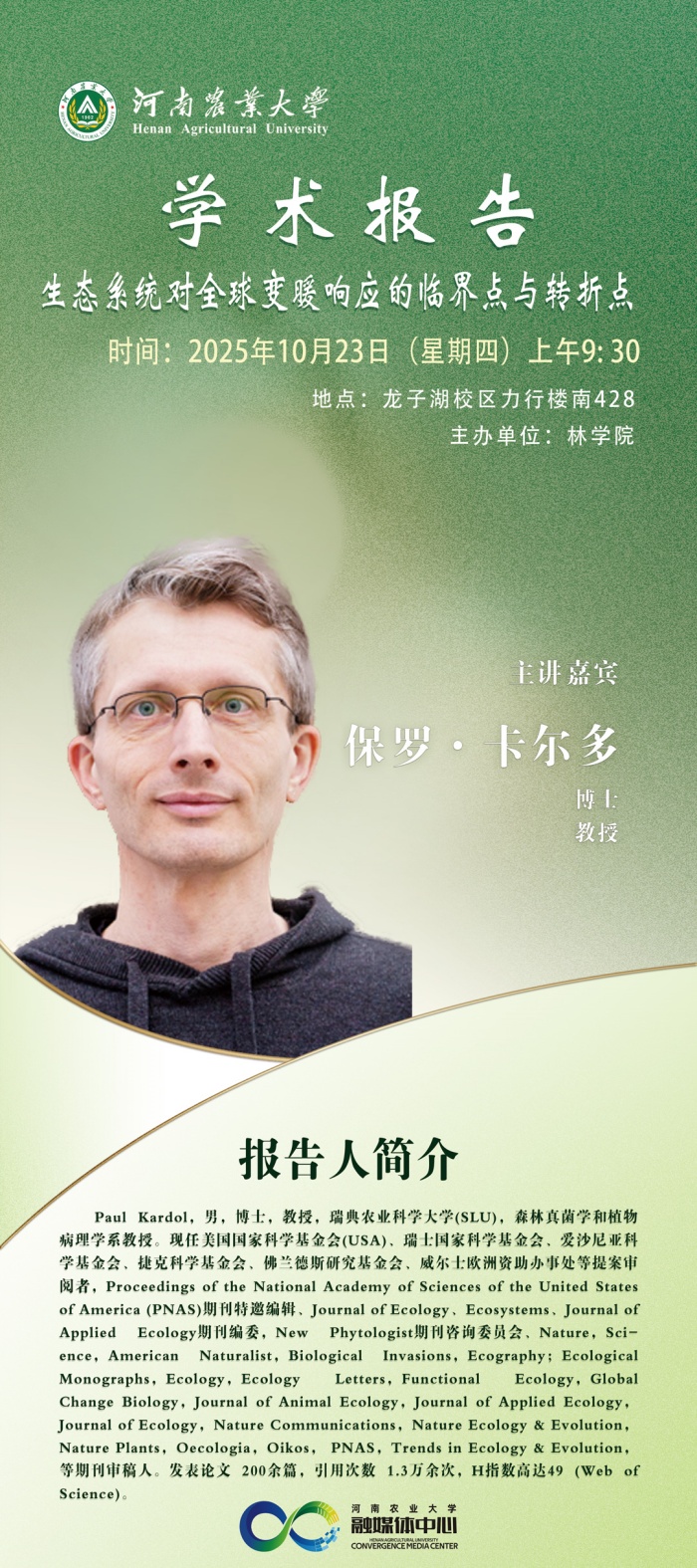 10月23日| 生态系统对全球变暖响应的临界点与转折点(保罗·卡尔多)