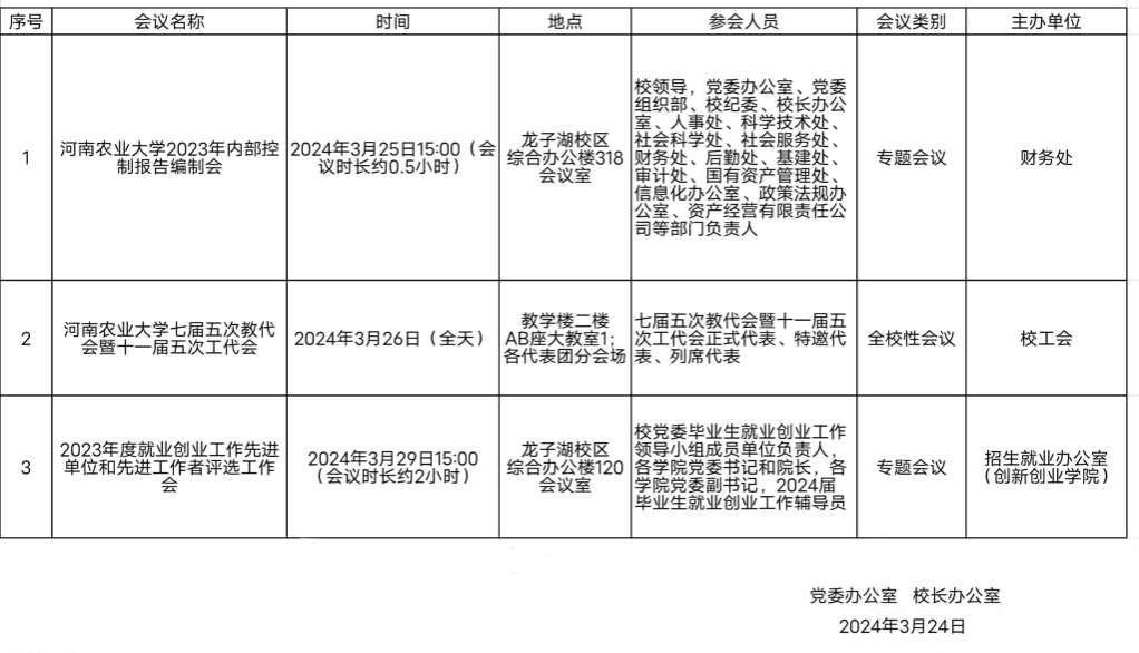 2023-2024学年第二学期第五周会议安排(3月25日—3月29日)