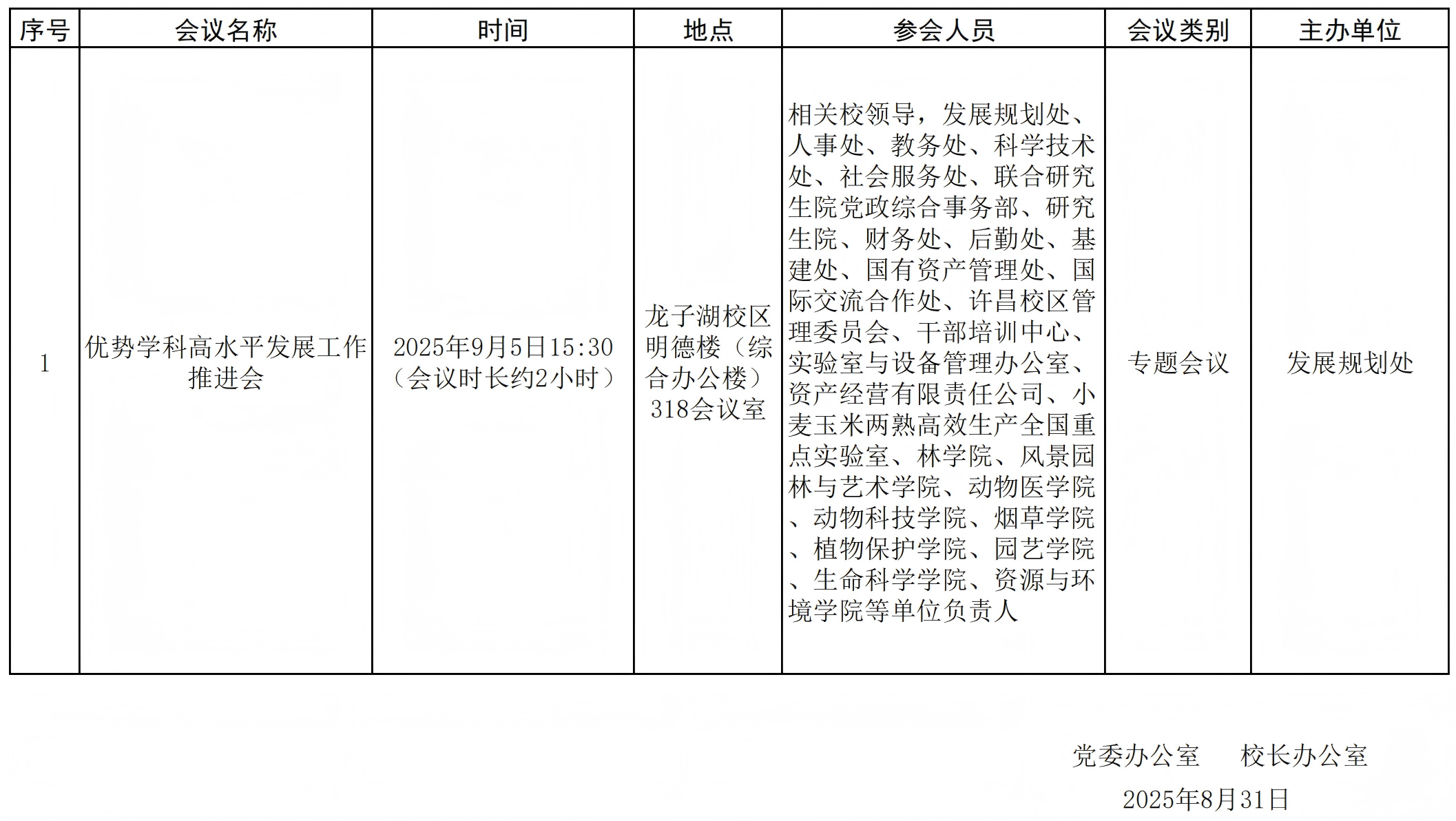 会议通知:2025-2026学年第一学期第一周会议安排(9月1日—9月7日)