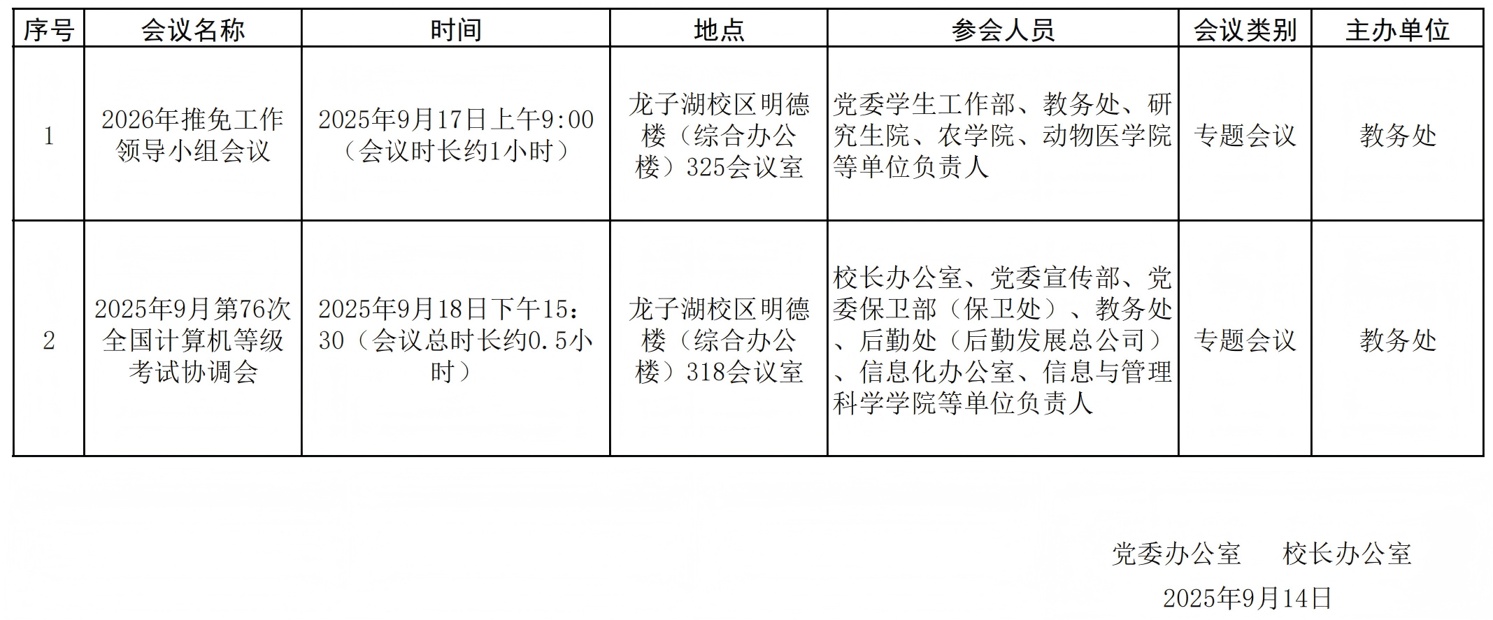 会议通知:2025-2026学年第一学期第三周会议安排(9月15日—9月21日)